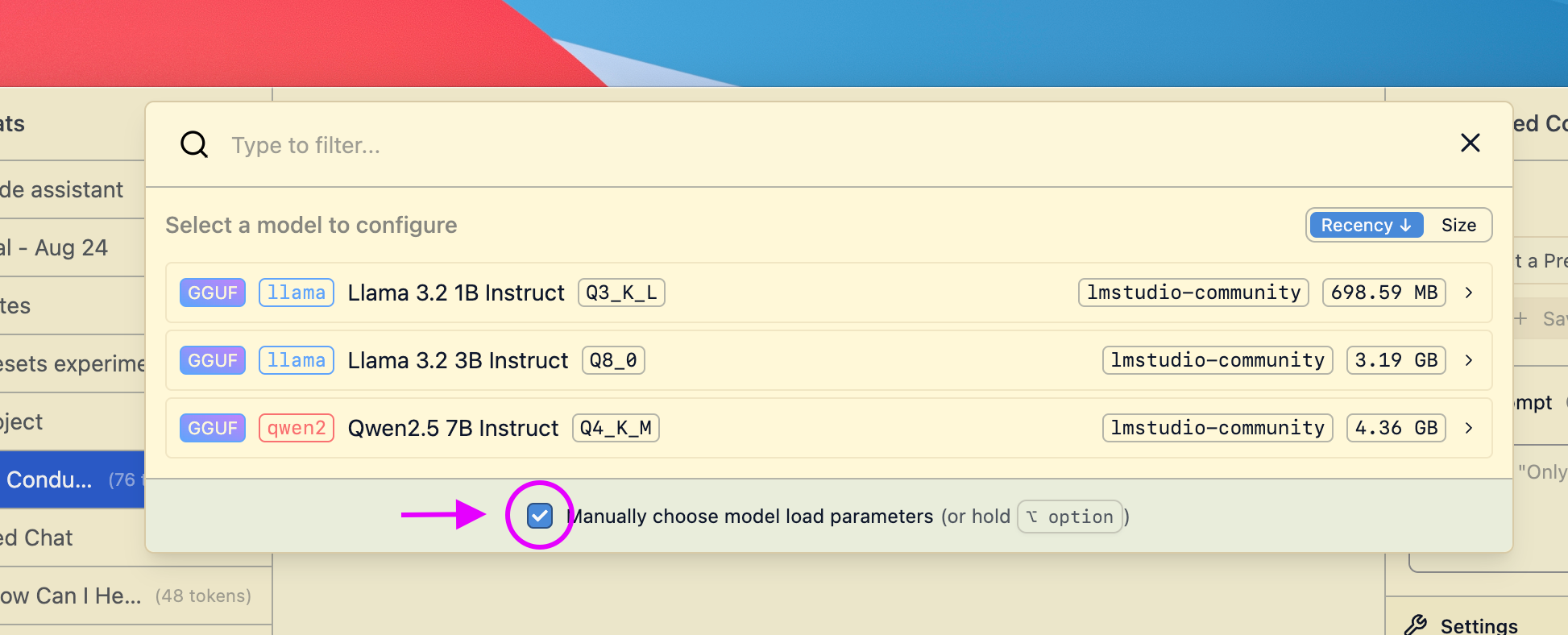 2. Select one of the models you downloaded (or [sideloaded](/docs/advanced/sideload)).