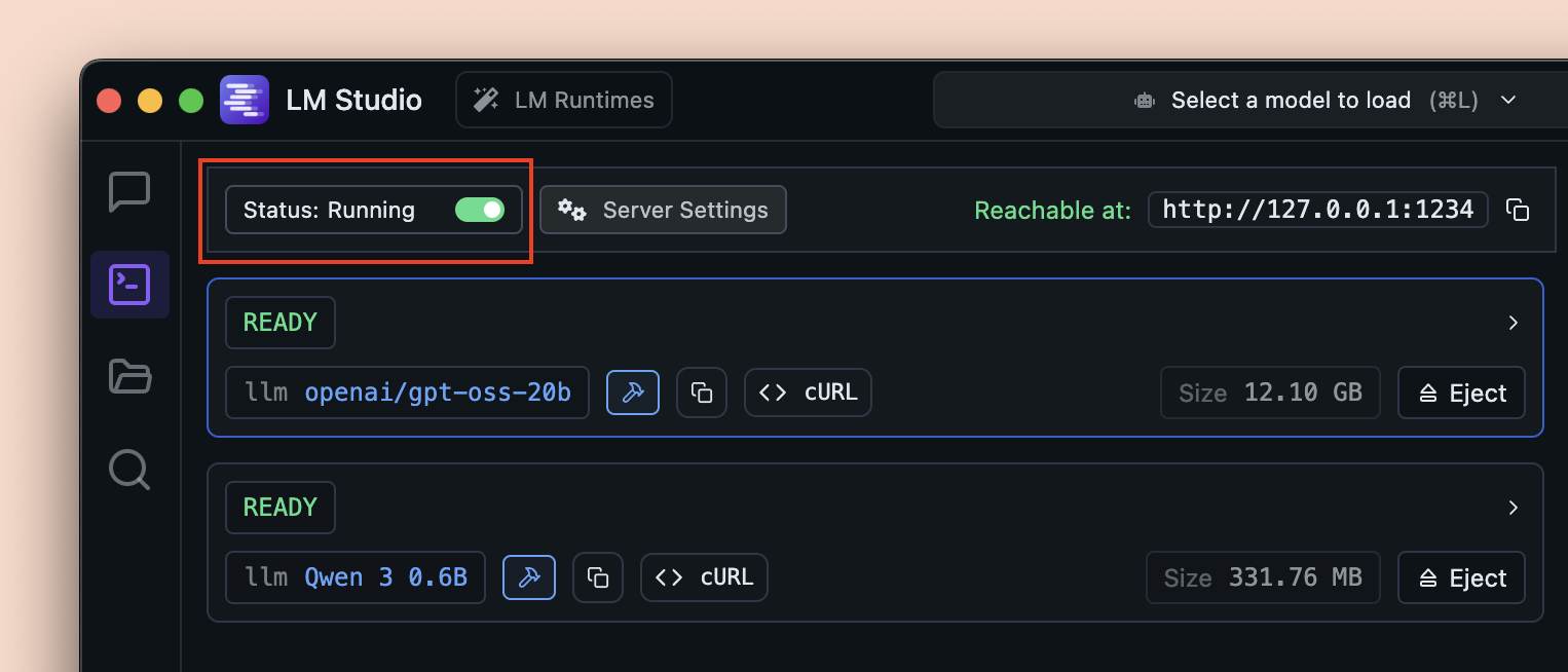 To install or manage LM Runtimes, press `ā` `Shift` `R` on Mac or `Ctrl` `Shift` `R` on Windows/Linux.